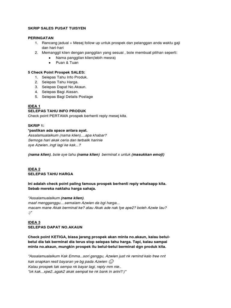 Target pelanggan Anda kemungkinan tidak akan mau berlama-lama untuk membaca. 1 Skrip Follow-up Berkesan Tingkatkan Jualan Ketika Pelanggan Dapat Gaji. Dapatkan Tidur Yang Mencukupi.